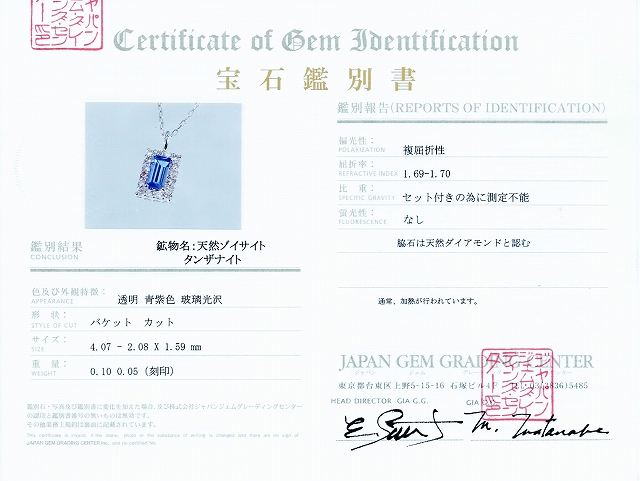 Pt900タンザナイトダイヤモンドネックレス T0.10ctD0.05ct 1.0g 40cm
